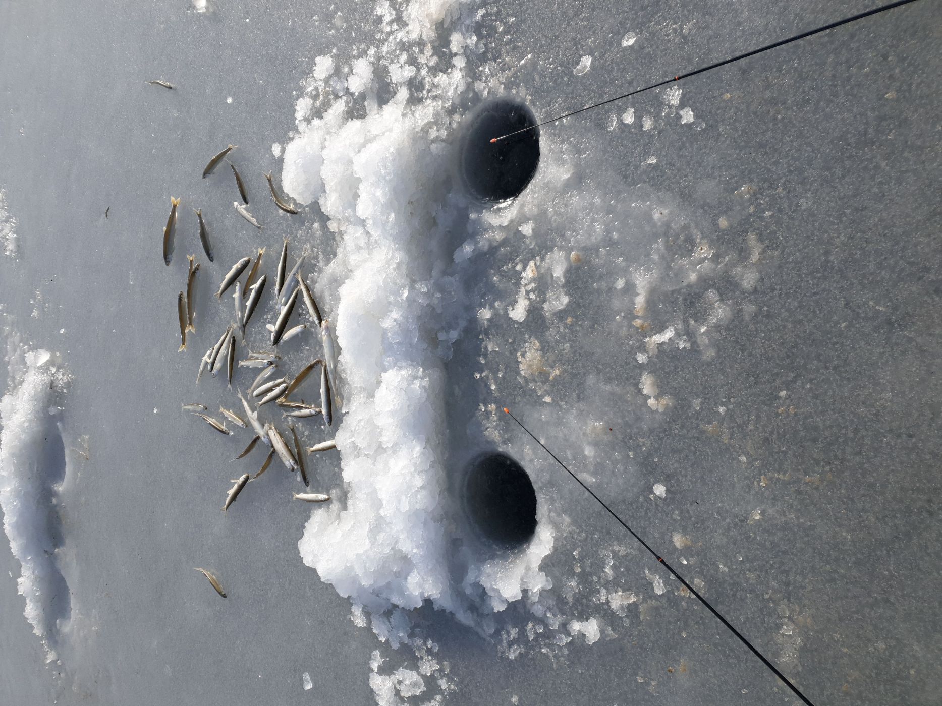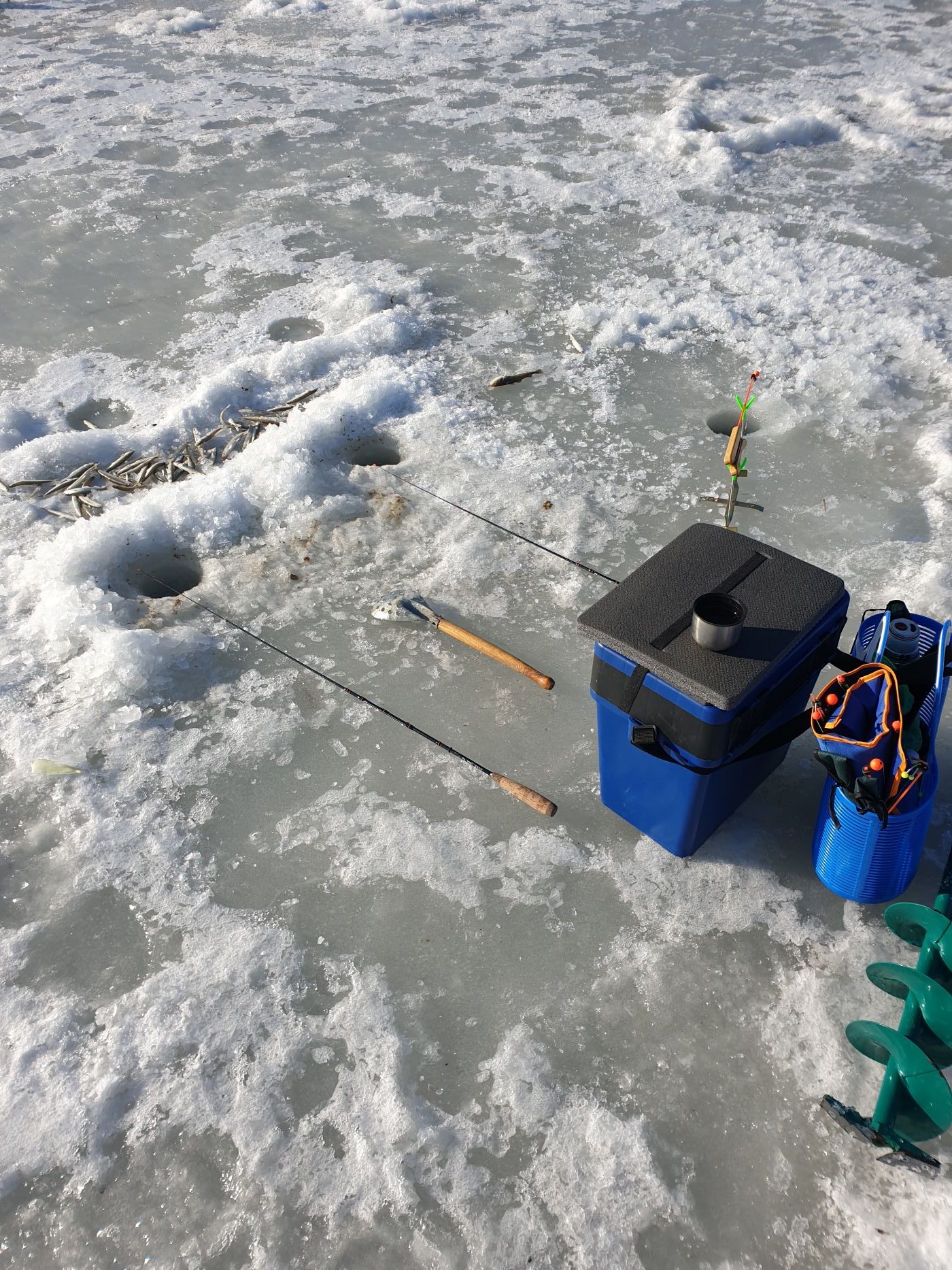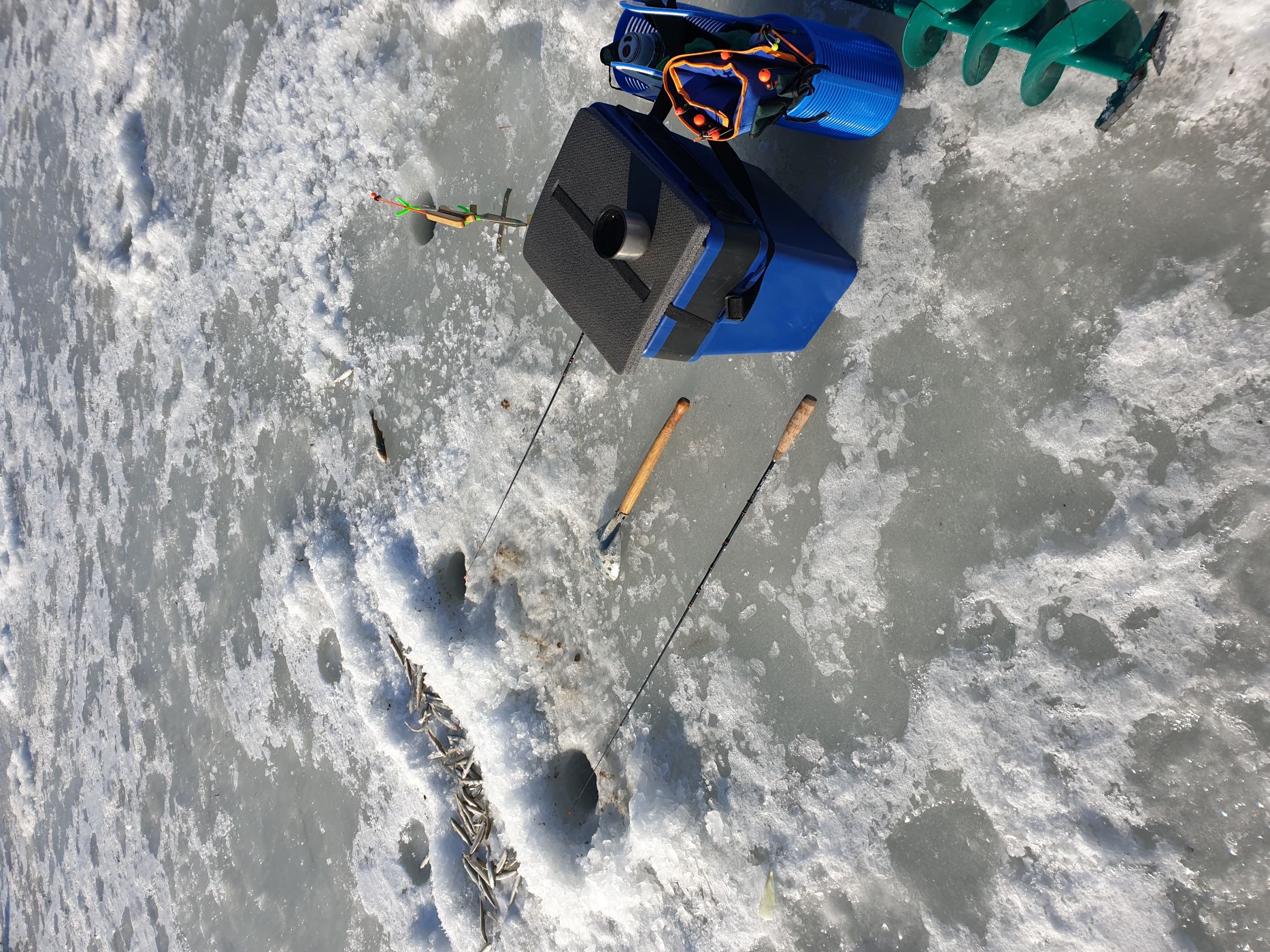 - До места рыбалки поедем на легковом автомобиле. Общее оборудование и личное имущество от машины до места ловли (100–500 м) доставляем совместными усилиями, выезд авто на лёд запрещён